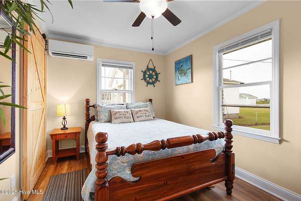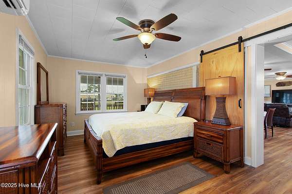 Discover a unique waterfront property on over 4 acres at 221 Bayview Drive! This fully furnished 2 bedroom, 2 bath home with a flex room features a desirable split floor plan and an open, light-filled design. Enter into the main living area, where the kitchen, dining, and living room flow seamlessly together with abundant natural light, LVP flooring, and views of the water. The bright kitchen is finished with granite countertops, a tiled backsplash, and a center island with bar seating, perfect for entertaining. Two bedrooms share a full bath just off the living space, while an additional flex room with an unpermitted private bath is accessible from both the dining area and porch. Each room has their own mini-split unit, making it easy for everyone to feel comfortable! Outside, the wrap-around porch expands to a spacious back deck and patio, creating the perfect setting to relax or entertain on the water. Here the creekside setting is the star, with 10 boat slips and kayak storage, you can be on the water in minutes. The property also includes a large metal workshop garage, fenced yard, and a charming shed with its own fenced area. The unpermitted 2 bed/2 bath Road Warrior camper with a deck and covered hot tub offers extra space for entertaining guests, though once removed cannot be replaced. Currently used as an Airbnb, it is the perfect investment property, weekend getaway, or primary residence! Located on Harkers Island's peaceful bayside, this property offers the charm of a quiet coastal community just minutes from the Cape Lookout National Seashore and a short drive to historic downtown Beaufort. Don't miss out on this one-of-a-kind spot where coastal living and investment opportunities meet. Seller is willing to move camper prior to closing if buyer is not interested in the camper.