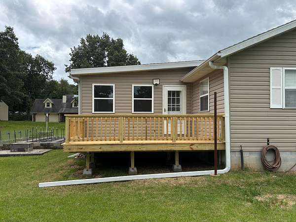 Sitting on a high peninsula in Janian Hills Subdivision, this 3 bed, 2 full bath house has a view of Bull Shoals Lake from not only the front but also the rear of the home. A recently completed 15x35 ft. addition on the back of the home consists of a mudroom and a 4 seasons room. The big 2 car attached garage has shelving for storage purposes. The home comes with a private septic (1000 gallon concrete recently pumped) and the water is from a community well. There are 8.5 contiguous lots and the property goes from road to road. Various internet providers here, including with fiber optics, make working from home a breeze. NEW DECKS coming from the 4 seasons room and mudroom have been added. The layout of this home was well thought out with the flow of the rooms and various entrances. All the rooms are nice sized. There is ample closet space and the master has a large walk-in that sports a 'Butler Light'. The kitchen pantry also has garage access so mama doesn't have to carry groceries all thru the house. All appliances stay and the carpets have been recently cleaned. Lost Woods Golf Course is nearby and Cookie's Restaurant at Theodosia is only minutes away by either car or boat! Golf or Fish...Fish or Golf. Either way, life at the lake is great!A boat slip in a nearby 8 slip dock is also available for the home buyer at private treaty. The slip is a 10x28 and includes a solar powered lift and locker. Also included on the dock is a swim platform with 'doggie' ladder and fish cleaning station.