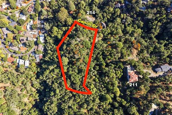 From Hwy 24 in Orinda, turn north on Camino Pablo. Turn left on El Toyonal. Turn right on Canon Dr. The parcel is near the end of the cul-de-sac on the left. It is across from the house at 214 Canon Dr.