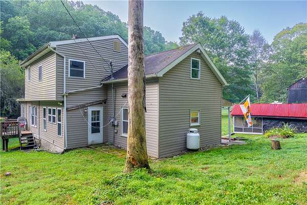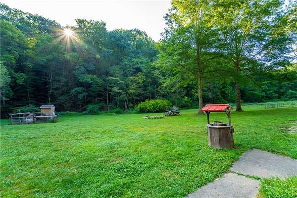 This is your private slice of heaven! Imagine sitting on the porch watching the sunrise over 9.62 acres of beautiful greenery. Located 5 minutes west of Zelienople & 15 minutes north of Cranberry, this location allows for seclusion with access to local shopping & dining. The galley kitchen features a gas cooktop oven, dishwasher, refrigerator, & loads of cabinets. Step into the living room & find an abundance of shelves, perfect for a home decorator &/or displaying your best Terrible Towel. The centerpiece of the living room is undoubtedly the wood-burning fireplace & stone wall. Getting ready in the morning is a breeze when you have a 1st floor primary bedroom & bathroom. The rear deck & versatile den can be transformed into a space for relaxation. A half bath is conveniently located off of the laundry room. The 2nd floor offers 3 beds & an office. There are 2 chicken coops, a firepit, a water well, well house, & a 3-story barn. New water filtration system & Farmall Tractor included.