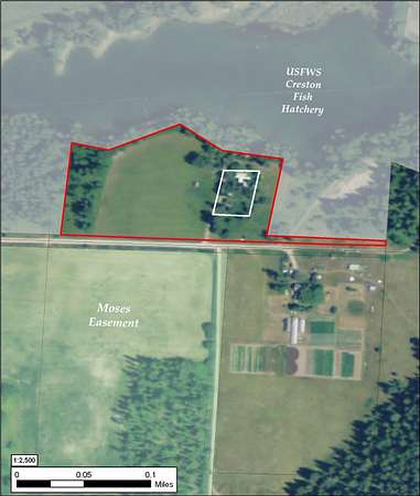 Take Montana Hwy 35 to Creston Hatchery Road. Go North on Creston Hatchery Road go East on Kauffman Lane to property on North side of road.