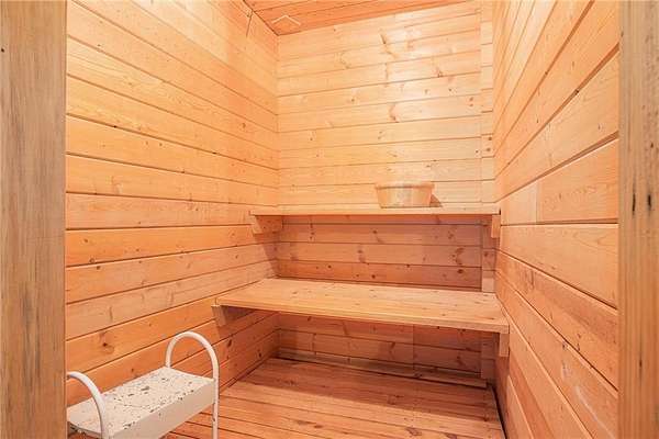 The finished lower level includes a bar with built-in cabinetry for your favorite spirits and glassware, a huge flex space ideal for a home office, and a private bedroom--perfect for guests or teens. Unwind in the sauna after a workout in your personal fitness room. There is wiring ready to go for a hot tub on the lower patio by the bedroom. There is a propane heater for an emergency backup. This will heat the entire basement.