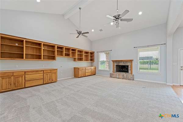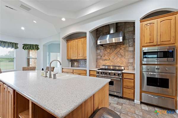 Custom Hill Country Retreat on 6.2+ Acres in Liberty Hill ISD! Tucked behind the gates of Sundance Ranch, one of Liberty Hill's most sought-after equestrian communities, this custom one-story home sits on over 6.2 wooded acres alive with wildlife and privacy. Built in 2003 and thoughtfully designed for both everyday living and effortless entertaining, the property has been freshened up with interior paint and new carpet throughout. Step inside to a light-filled open floor plan anchored by a dramatic family room featuring soaring cathedral ceilings, a custom built-in bookcase and entertainment center, and a warm fireplace that grounds the space. With 4 bedrooms, 4 baths, a private office, flex space, formal dining, and a sunlit breakfast area, there is room for every season of life. At the heart of the home is a true chef's kitchen outfitted with top-tier Viking appliances, including a built-in electric oven and microwave, propane range and cooktop, icemaker, and oversized built-in refrigerator. A wet bar with sink makes hosting effortless, and the covered front and back porches invite you to slow down and enjoy the Texas air. Take the party outside to the built-in covered BBQ smoker, perfect for weekend gatherings under the oaks. Fully fenced and cross-fenced, the acreage offers flexibility for horses, a workshop, or simply room to roam. A 3-car side-entry oversized garage provides storage and space for toys, trucks, or trailers. Country living, custom craftsmanship, and community prestige. This is the one you have been waiting for.