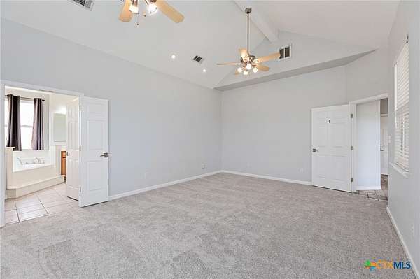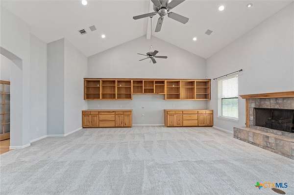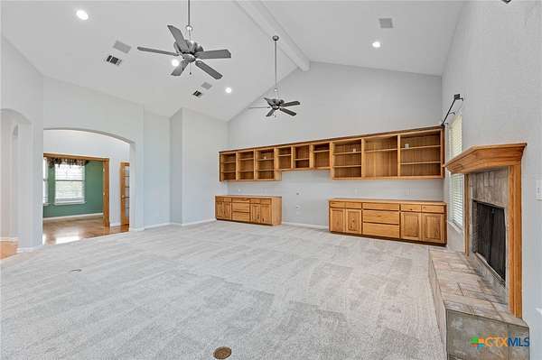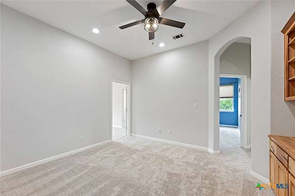 - All Bedrooms Down, Bookcases, Breakfast Area, Breakfast Bar, Ceiling Fans, Double Vanity, Garden Tub Roman Tub, High Ceilings, Home Office, In Law Floorplan, Kitchen Island, Main Level Primary, Pantry, Primary Downstairs, Recessed Lighting, Separate Shower, Solid Surface Counters, Walk In Closets, Wired For Data, Wired For Sound