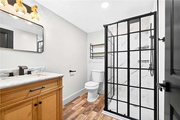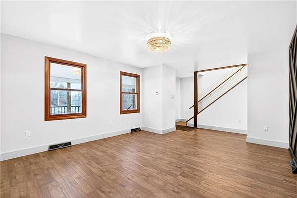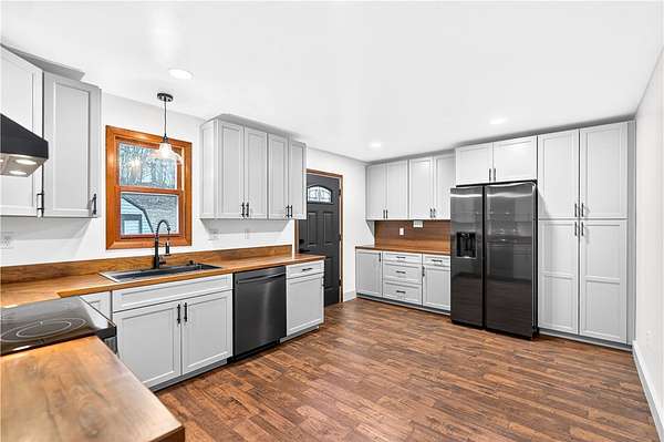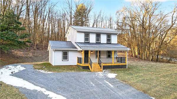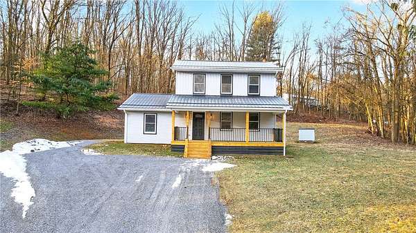 Better Than New! Situated on a private 2.4 Acre Lot In Darlington Township, Blackhawk School District! This renovated 4 bedroom 2.5 Bath Home Will Wow You the Moment you pull up! Quality Materials Throughout! If you're looking for a modern home with a warm farmhouse feel this is it! Newly graveled driveway provides ample parking. Exteriorly this home has a brand new metal roof, siding, soffit, fascia, & gutters. Imagine sitting on the covered front porch this spring to enjoy your morning coffee & watch the deer frolic. The large entry greets you with a beautiful wooden staircase & cable lined handrail. Coat Closet for added convenience. Luxury vinyl wood plank flooring throughout main level. The spacious living room boasts an accent wall & has a plethora of light. The moment you step into the gourmet kitchen you will smile. So many thoughtful upgrades have gone into this kitchen including solid hickory countertops, black stainless-steel appliances, an abundance of cabinetry, & pantry with pull out drawers. The chef in the family will appreciate preparing meals in this beautiful space! Just off the kitchen is a half bath on the main level with a 1st floor laundry! The primary bedroom boasts an on suite full bath with tile surround walk in shower & flooring plus classy grid glass doors. The walk-in closet will not disappoint! Head upstairs and find the 3 additional spacious bedrooms all with brand new carpet & ceiling fans. The largest of the rooms also has a walk-in closet! Additional full bath with mosaic tile surround accent, Rattan vanity, & matte black hardware. The lower level has so much potential to finish for a family room or use for extra storage. You will have peace of mind with the updated mechanicals including Upgraded 200 Amp Electric Panel, New Furnace, New Central Air, New Hot Water Tank, & high end well pump tank. Out back you will find an 11X12 shed with electric, brand-new roof, and siding! Perfect for your woodworking projects or hobbies. Privacy abounds, yet conveniently located to 51, 376, & the Turnpike! This home is an absolute Must See!