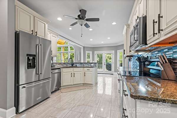 Welcome to your dream home in Harbor Ridge, a gated, lake-access community where neighbors wave hello and life moves at a slower, more relaxed pace. Enjoy peaceful living while still being approximately an hour from Charlotte, Winston-Salem, Asheville, and Boone-the perfect balance of privacy and convenience. Situated on 2.9 acres, this spacious 4-bedroom, 4.5-bath home offers a thoughtfully designed layout with main-level living at its best. The primary suite, laundry room, and home office are all conveniently located on the main floor. The recently remodeled kitchen is open to the living area and breakfast nook, creating a warm and inviting space, while still offering a formal dining room for hosting special gatherings. The full basement provides endless possibilities with bonus rooms, a recreation room, and a den-ideal for entertaining, hobbies, or additional living space. Step outside to enjoy multiple decks, a covered entertaining area, and a hot tub, all overlooking your private outdoor paradise. The large pool and pool deck make this home perfect for hosting family and friends all summer long. Harbor Ridge residents enjoy gated security, scenic walking trails, lake access with boat slips, and a community picnic area-everything you need for laid-back lake living in a beautiful setting. This is more than a home; it's a lifestyle.