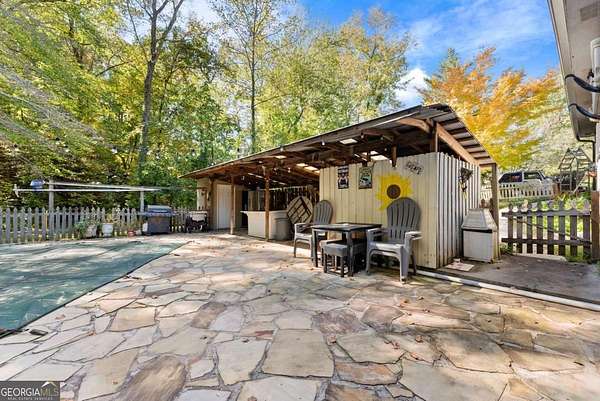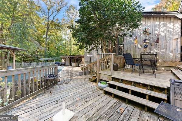 Private 6.6-Acre Estate with Pool, Guest Apartment & Workshop! Welcome to your own private retreat nestled on 6.6 acres surrounded by mature hardwoods, a small stream, and peaceful natural scenery. This charming 3-bedroom, 2-bath main residence offers the perfect blend of comfort and character with tile, carpet, and hardwood flooring, a primary suite on the main level, and a spacious kitchen featuring stained cabinetry and solid surface counters. Step outside to your backyard paradise, a saltwater pool with gas heater (never been noisy). Surrounded by multiple decks and a covered entertaining pavilion. The pump house/pool house includes a half bath, and all pool pumps were replaced within the last two years. The property also features a detached 2-bedroom, 1-bath apartment/guest house - perfect for rental income, in-laws, or extended family. Plenty of parking and space for everyone! 40x28 workshop - ideal for hobbyists, mechanics, or storage. 14x28 RV parking bay with covered protection. 36x18 storage shed for tools and equipment. Located just minutes from town yet offering unmatched privacy, this property provides incredible flexibility!