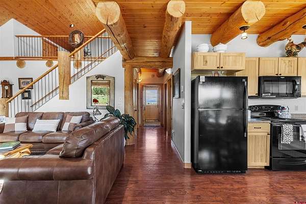 Jazz Janda, Keller Williams Realty Southwest Associates, LLC - Montrose, C: 970-901-3800, jazzajanda@gmail.com, www.crenmls.com: Experience the charm of true Colorado living in this beautiful log home set on 5 usable acres with breathtaking views of the Cimarron Mountains, the San Juans, and Mt. Sneffels. Peaceful, private, and surrounded by abundant wildlife, this property offers a rare opportunity to enjoy the beauty and serenity of the mountain lifestyle in a quiet rural setting.Inside, the home welcomes you with an open and inviting floor plan, high ceilings, Pergo flooring, rich hickory cabinetry, a cozy wood stove, and natural gas forced-air heat. The spacious loft adds exceptional versatility and could easily function as a third bedroom, second living area, office, or private retreat. With two closets and plumbing already in place for an additional bathroom, the upper level offers outstanding potential for future expansion.With no HOA, the property offers the freedom to enjoy the land as you choose, with ample room for RV parking, recreational vehicles, or the future addition of a garage or workshop. Ideally located near Ridgway, Ouray, Telluride, and Montrose, this property combines privacy, scenery, and convenience in one exceptional offering.