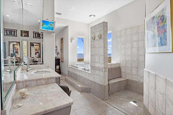 PRICE IMPROVEMENT on waterfront estate! This custom Mediterranean-style home with durable ICF construction, offers unparalleled elegance and breathtaking views of the Santa Rosa Sound. Step inside to discover exquisite details at every turn. The home exudes elegance, featuring dramatic floor-to-ceiling columns, handcrafted doors and a spectacular Mahogany staircase that leads to 2 beautifully appointed rooms. Master suite is a haven of comfort & sophistication, with a cozy sitting area and pass-through gas fireplace that adds warmth & charm. Geothermal HVAC. Experience the serene beauty of 295' of private waterfront from your covered patio, complete with elegant cypress wood ceilings, offering the perfect place to relax and take in the breathtaking views. Schedule a private showing today!