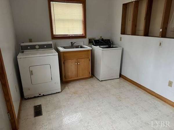 Nestled on 17.9 +/- acres with expansive road frontage, this nice vinyl-sided two-story home offers incredible potential. With a little TLC, it could become your dream retreat! The living room seamlessly flows into a spacious dining area and kitchen, perfect for family gatherings and entertaining. On the main level, you'll find a convenient laundry area, a generous primary suite and a full bath. Upstairs, two large bedrooms provide plenty of space, along with a second full bath. The unfinished basement, currently without a concrete floor, offers endless possibilities for additional storage or living space. The property also boasts several barns and outbuildings, perfect for hobbies or storage. This is a unique opportunity to create your ideal country haven!