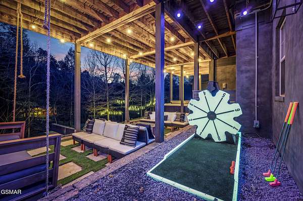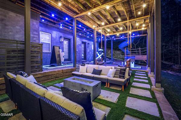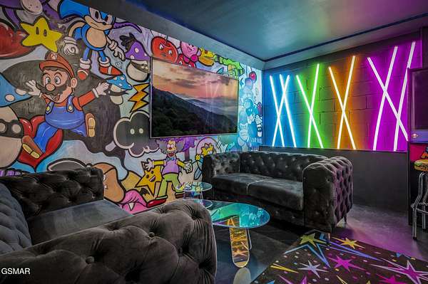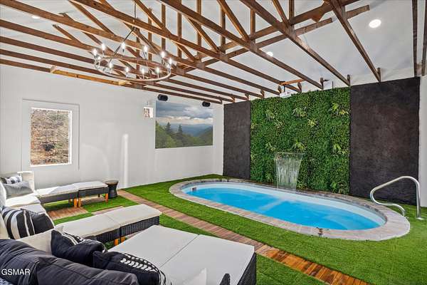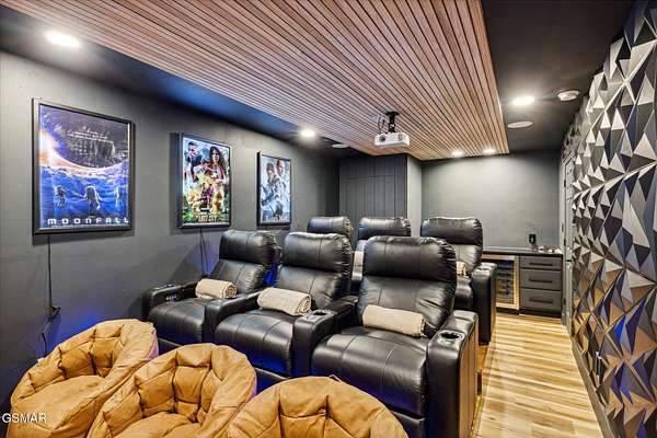 ONCE-IN-A-LIFETIME INVESTMENT OPPORTUNITY! SPRINKLER SYSTEM INSTALLED! This spectacular luxury retreat, known as ''The Experience,'' offers 5 spacious bedrooms, 4 additional bonus rooms, and 6 full bathrooms, totaling over 5,200 sq ft of modern cabin luxury! In 2024, this showstopper grossed over $356,000, making it a high-performing asset and unique gem in the Smokies. (COMES FULLY FURNISHED AND BOOKINGS WILL CONVEY WITH SALE. IF BUYER STAYS WITH CURRENT MANAGEMENT COMPANY LISTINGS WILL CONVEY!) Unlike any other, this modern-style indoor pool cabin features a 558 sq ft heated and cooled private pool room with a color-changing waterfall and theater-style projection screen-an unforgettable experience for guests! With two full theaters, a huge arcade room, and amenities like black light mini golf, basketball court, sand volleyball, and more, it's a rental powerhouse. Resting on a 1.52-acre private lot with a stocked pond, fishing dock, and paddle boat, this cabin offers a rare mix of high-end entertainment and natural serenity. Relax in the 8-person hot tub or gather around the modern outdoor fire pit at your leisure. From WWI-era barnwood accent walls to marble showers, the finishes are top-tier-offering the feel of a boutique resort in a totally private setting. Located just 15-20 minutes from Gatlinburg, this property is the ultimate blend of luxury, fun, and profit potential. Don't miss this truly extraordinary opportunity!