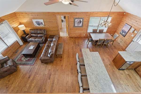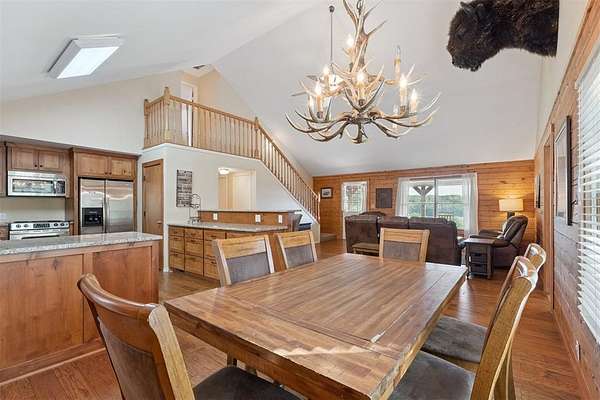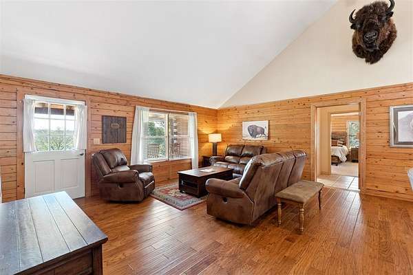 PEACEFUL, QUIET AND PRIVATE LIVING WITH EASY ACCESS TO OKC. 158 ACRES FULLY FENCED WITH ELECTRIC ACCESS GATE. FULLY PAVED ROAD AND DRIVEWAY. BEAUTIFUL LOG CABIN INSIDE AND OUT. COVERED PORCH WITH SWING ALLOWS FOR QUIET MORNING OVERLOOKING THE 11 ACRE POND. HOUSE IS MOVE IN READY. STAINLESS STEEL APPLIANCES, GRANITE COUNTER TOPS, WOOD FLOORS AND OPEN FLOOR PLAN MAKE THE INSIDE JUST AS GOOD AS THE OUTSIDE. PROPERTY ALSO HAS A BARN WITH MULTIPLE ACCESS, PIPED FOR COMPRESSES AIR AND ALSO HAS AN OFFICE SPACE. THERE IS ALSO A COVERED SHED FOR ADDITIONAL TRACTOR STORAGE. GREAT PROPERTY FOR COUNTRY LIVING, ALL KINDS OF HUNTING OR JUST A GREAT GET AWAY SPACE.