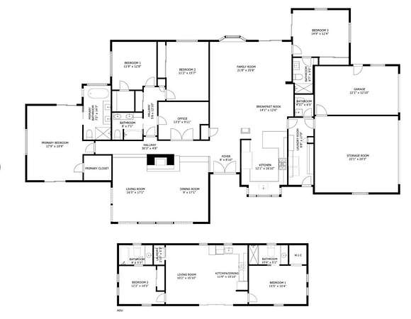 - Bathroom x 5, Bedroom x 5, Dining Room, Family Room, Kitchen, Laundry, Office, Workshop