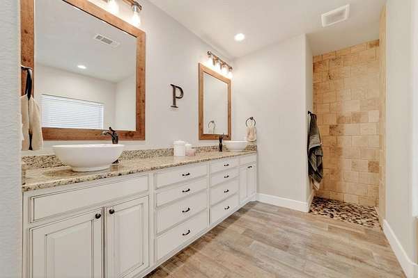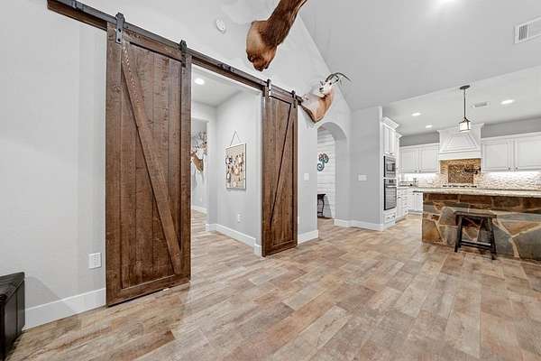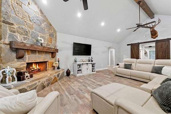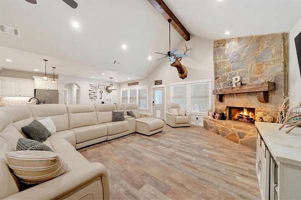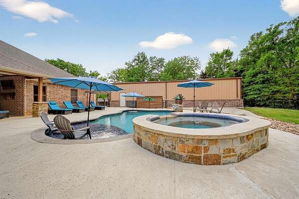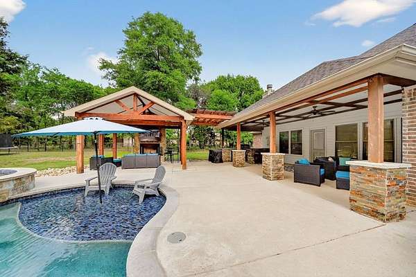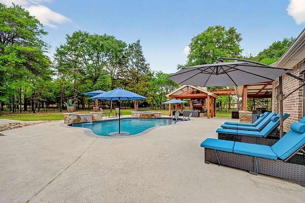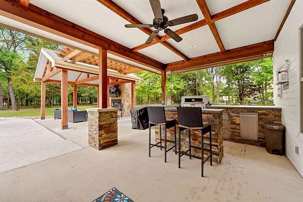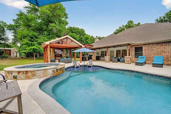 Luxury Country Living! Welcome to 2211 Canyon Lake Road. Single-story home on 5+ wooded acres in the desirable Shadow Lakes community of Wills Point, TX! This 3-bedroom, 2.5-bath home with a dedicated office offers an open-concept layout designed for both comfort and entertaining. Interior features include custom-built cabinetry, granite countertops, ceramic tile throughout, all LED can lighting, and a new dishwasher. Energy-efficient upgrades include radiant barrier attic decking and SunTex solar screens. Step outside to your private retreat featuring a stunning saltwater heated pool, (installed Summer 2024) complete with spa, waterfall, tanning ledge, bubblers, and LED lighting, all app-controlled. The outdoor living space also includes a fully equipped kitchen with grill, refrigerator, and storage, plus a second patio with a large second stone fireplace-perfect for gatherings year round. The property includes a 30x60 shop with two 12x10 roll up doors and a bathroom, an oversized garage, and a wrought iron fenced backyard with double gate access. Enjoy a scenic setting with mature trees, beautiful landscaping, a small pond, and plenty of space to roam. Additional features include 4K security cameras and custom Christmas lighting, that stays with the home. Located in a community offering multiple lakes, fishing, hiking trails, and a pool, with convenient access to Hwy 20 and nearby amenities. Turn-key and move-in ready! This property truly has it all!