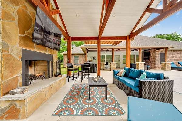 - Built-In Barbecue, Covered Patio/Porch, Fence, Fire Pit, Gas Grill, Lighting, RV Hookup, Rain Gutters