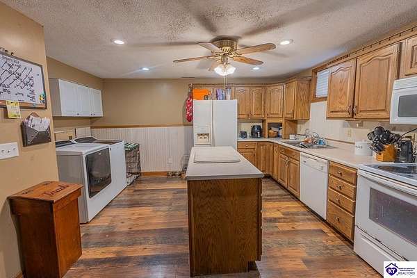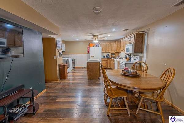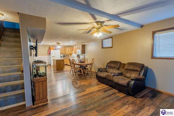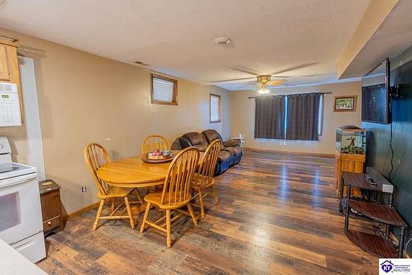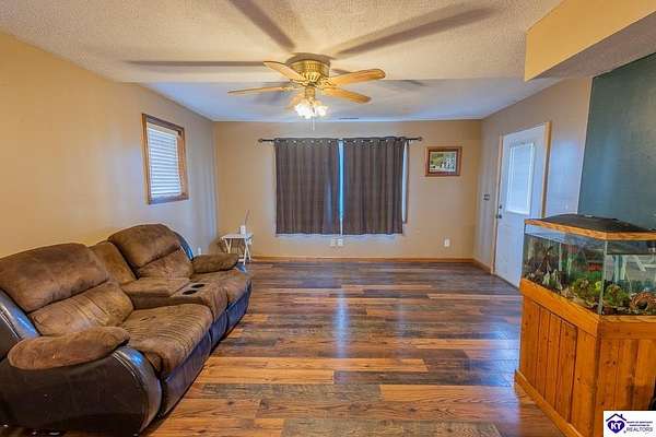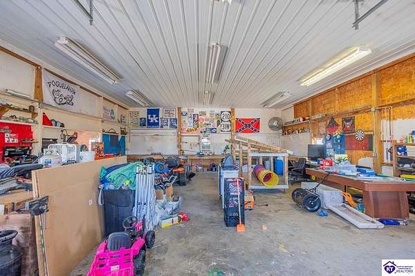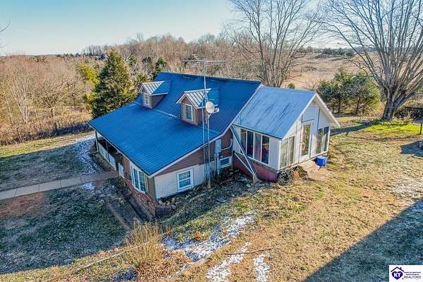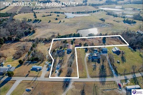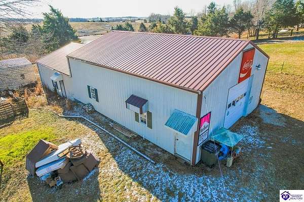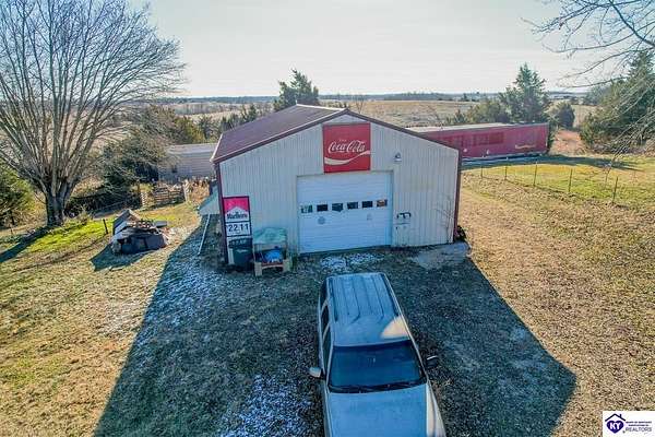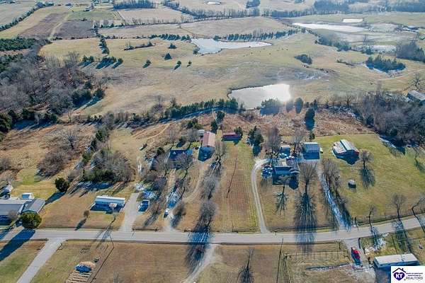 Situated on 4.46 acres between Elizabethtown and Hodgenville, this 3-bedroom, 2-bath berm-style home offers the perfect setup for a mini-farm or hobby property. While the home needs some TLC, the land and improvements provide endless possibilities. Outbuildings include a two-car metal garage, an impressive 80x40 metal building with shop space, concrete floors, electric, and additional storage or livestock area, plus another detached storage building. A semi box trailer will remain. The back field, though currently overgrown, offers strong potential for horses, feeder calves, or pasture use. Call for a tour today.