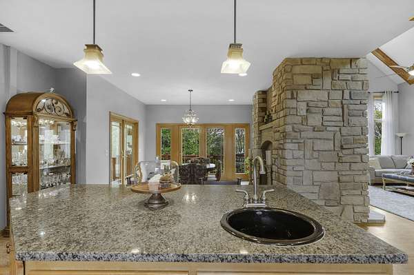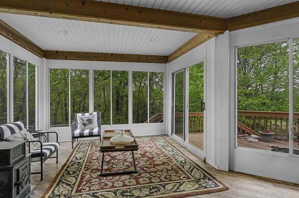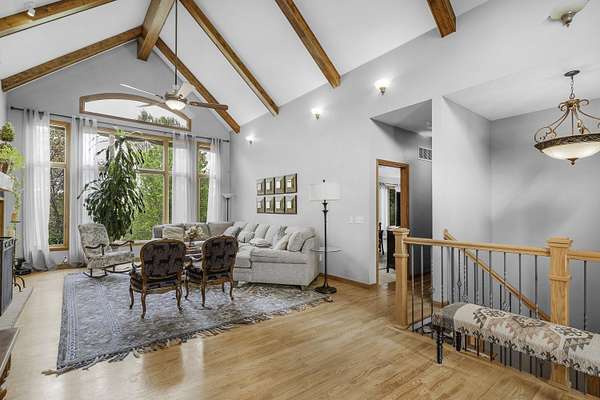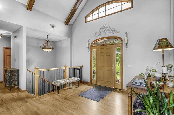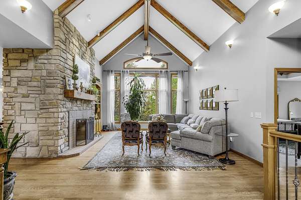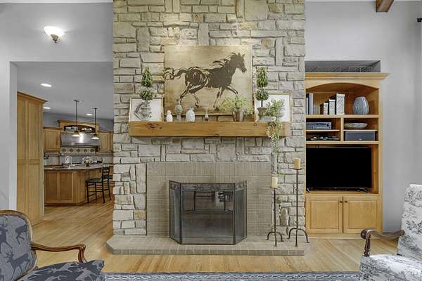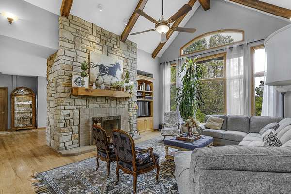 Welcome to your dream home! This beautifully maintained traditional ranch-style estate offers almost 4,500 square feet of living space, thoughtfully designed for comfort and style. Featuring 4 spacious bedrooms and 3 1/2 bathrooms, there's room for everyone to spread out and enjoy. Inside, you'll find custom cabinetry, granite countertops, and a living room with soaring cathedral ceilings along with wood beams, creating an inviting yet large atmosphere. An exquisite see-through fireplace serves as the centerpiece between the living room/dining/kitchen area. The expansive primary suite is cozy and inviting. Enjoy year-round relaxation in the heated and cooled sunroom, recently enhanced with a new 12,000 BTU mini-split system for perfect climate control. Throughout the home, you will find hardwood floors along with the spacious walk-out basement with full kitchen, office and bedrooms, full bath, luxury waterproof vinyl flooring and custom milled trim throughout. You'll love the dedicated home office, perfect for remote work or study. Large Anderson windows and a direct walk-out to the backyard flood the space with natural light. The home also boasts of a new impact resistant architectural shingled roof (2024), new HVAC system (2024), new 50-gallon propane water heater (2024), and a new car charging station in the garage. Freshly painted on the exterior (2024) and interior, the property is move-in ready and meticulously maintained. The acreage is fully equipped with two 12x24 horse run-in sheds and an automatic pasture waterer, making it an ideal setup for horses and livestock. A French drain system was installed all around the home along with the barn area. Outside you will find perfect scenery, all while enjoying the Koi pond, firepit, and freshly made pizzas from the outdoor pizza oven! Some furnishings will remain in the home, and others are available upon request/for additional $$. Horses on the property are available for $$. By Appt. ONLY. More pics coming soon
