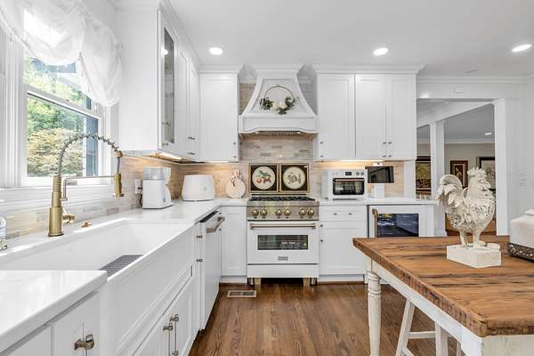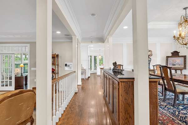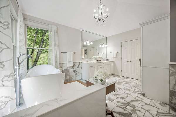 Perfectly positioned on 8.24 breathtaking acres along Candies' Creek and Fletcher Park, this private, riverfront estate offers a rare blend of timeless elegance, modern comforts, and natural beauty. As you pass through the stately electronic gates and down the tree-lined driveway, you'll discover a grand, all-brick traditional home with approx. 4,000 square feet and 1,800+ of additional luxurious living space. The main level features a stunning primary suite, soaring ceilings, elegant marble and hardwood floors, two cozy fireplaces, and a thoughtfully designed open floorplan accented by built-ins and a welcoming entry foyer. A chef's kitchen equipped with designer, smart appliances, built-in gas range, and seating for four makes everyday living and entertaining a delight.