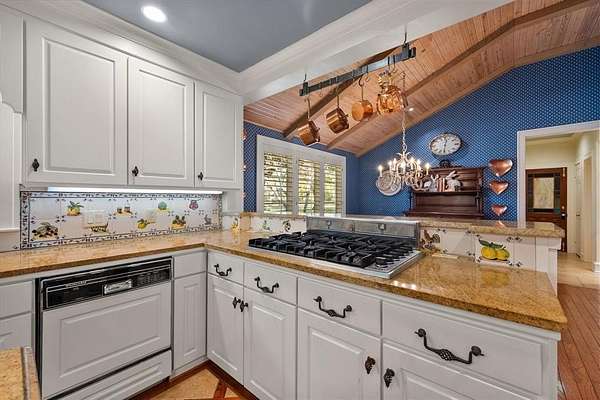 - Built-In Features, Cable TV Available, Cedar Closet(s), Chandelier, Decorative Lighting, Double Vanity, Eat-In Kitchen, Granite Counters, High Speed Internet Available, Kitchen Island, Natural Woodwork, Open Floorplan, Pantry, Second Primary Bedroom, Vaulted Ceiling(s), Walk-In Closet(s)