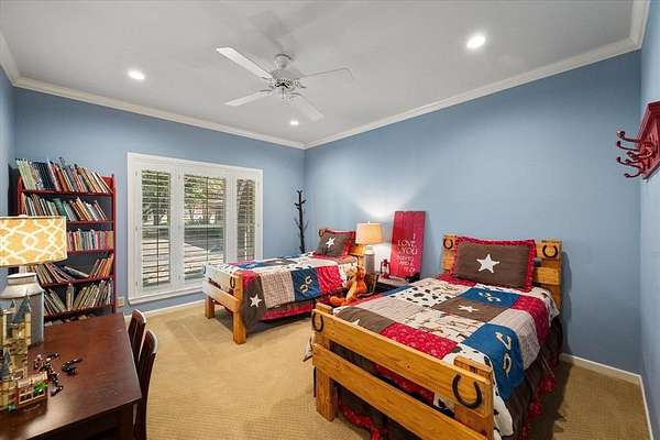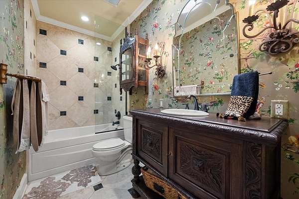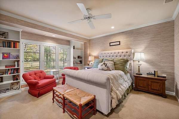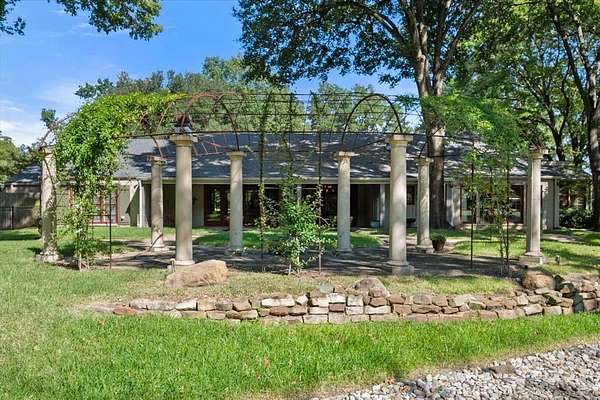 Nestled far back from the street on a peaceful 7.44-acre lot, this exceptional 4-bedroom, 3.1-bath estate offers privacy, space, and timeless character across 4,683 square feet of thoughtfully designed living space. A long driveway leads you to this quiet retreat, where mature trees, exterior accent lighting, and a serene setting create an impressive first impression. Inside, the home features two spacious living areas, each with its own fireplace, and two dining rooms perfect for both everyday living and entertaining. The large kitchen is a true centerpiece, offering abundant cabinetry, generous counter space, and a stunning butler's pantry complete with a sink and coffee bar. Beautiful tile floors imported from England, rich wood flooring, decorative lighting, built-in cabinets, and extensive storage highlight the many updates and custom additions throughout the home. All bedrooms include walk-in closets and ensuite bathrooms, providing comfort and privacy for everyone. The expansive primary suite showcases soaring ceilings, enormous his-and-hers walk-in closets, and a luxurious ensuite bath with separate vanities, a jetted tub, and a separate shower. Bonus rooms add flexibility for a home office, gym, or hobby space. Unique architectural touches are found throughout, including stained glass windows, skylights, and striking tile ceilings that add warmth and character. This home is also wheelchair accessible with no stairs and wide doorways. Step outside to enjoy the peaceful covered back patio and deck overlooking a koi pond with a waterfall feature--an ideal space to relax and unwind. Additional highlights include a charming she shed, a heated and cooled 3-car garage, and a quiet neighborhood setting that truly feels like a private escape. As an added bonus, this property is only three years away from receiving an agricultural exemption. This home is one of a kind, you don't want to miss your opportunity to see it!