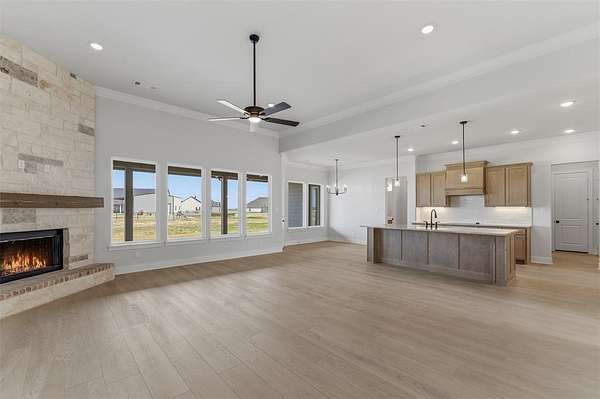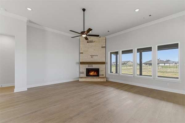 Estimated February 2026 completion! Ask us about our Trade In Trade Up program, we can buy your home! SPRAY FOAM ENCAPSULATED! Discover the allure of the Foxglove plan, an epitome of sophistication and comfort crafted by Riverside Homebuilders. This luxurious one-story abode spans 3,497 square feet, offering 4 bedrooms and 3 bathrooms, meticulously designed for modern living. With a 3-car garage and a thoughtful layout, convenience and elegance seamlessly intertwine to create an unparalleled living experience. As you step through the front door, you're greeted by an open and airy foyer with wood look tile in the main areas, setting the tone for the home's inviting atmosphere. Off of the foyer, the luminous dining room awaits, perfect for hosting memorable gatherings with friends and family. Adjacent to the foyer, discover two versatile flex rooms, adaptable to your every need--whether it be a home gym, office or creative space. Continue through to the heart of the home, where the magic unfolds--a sprawling family room adorned with a cozy fireplace, nestled near a charming nook and a chef-inspired kitchen boasting ample counter space and storage areas. On one side of the home, three traditional bedrooms each feature a walk-in closet and are accompanied by two bathrooms for utmost convenience. For added entertainment, indulge in the media room, ensuring every member of the family has a space to fulfill their passions. On the opposite side, the owner's suite awaits, offering a sanctuary of luxury with top-quality features, a stunning owner's bath and an incredible walk-in closet. Lastly, step outside to the covered back patio with an outdoor fireplace, where you can bask in the gorgeous DFW weather and embrace outdoor living at its finest. In the Foxglove plan, luxury, convenience and versatility converge to create the perfect haven for modern living.
