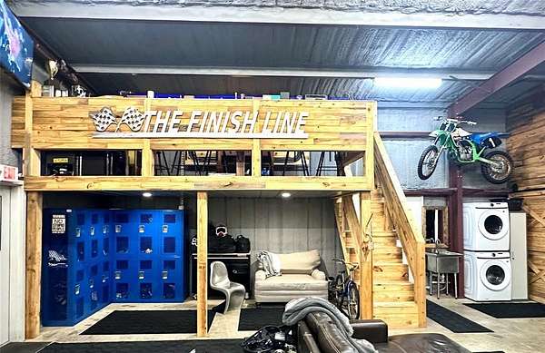 Continuing forward on the drive we approach an elaborate doublewide. 2- car carport, shade decks, 2176sqft. 4bd-2bath, large kitchen w-island, stainless appliances, corner tub, sky light, washer-dryer, nicely done home. Saving the best for last... is the Barndo. This place will simply blow your mind Crack the door open on this 3000sqft insulated BARNDO building and it is SO NOT what you're expecting. Its literally everything you can dream in one space,