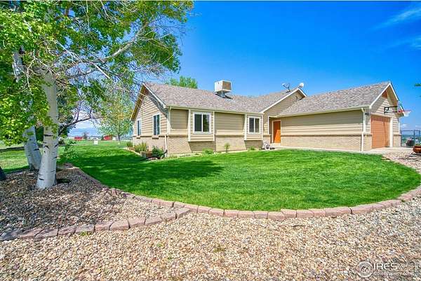 Peaceful Country Living with Mountain Views and NO HOA! Welcome to your private retreat on 4 acres, nestled in the country and bordered by over 300 acres of state-owned farmland offering unmatched privacy down a long, private lane. This spacious 1-Owner ranch-style 5-bedroom home is perfect for those seeking a quiet, nature-filled lifestyle without sacrificing comfort. 2-Car attached garage plus 3600 sq ft shop that will hold 10 or more vehicles. Palatial dog kennels and an RV dump. Great property for your dog with secure accommodations and plenty of room to run and play! Comfort & quality for Her; a place for toys and low maintenance for Him. Step outside to a covered patio and privacy to soak in the hot tub while enjoying the view of Longs Peak and Mount Meeker. With generous living spaces ideal for family life, entertaining, or simply relaxing, this property offers a rare blend of tranquility, space and natural beauty. MOVE-IN READY!