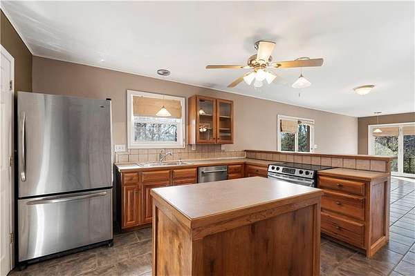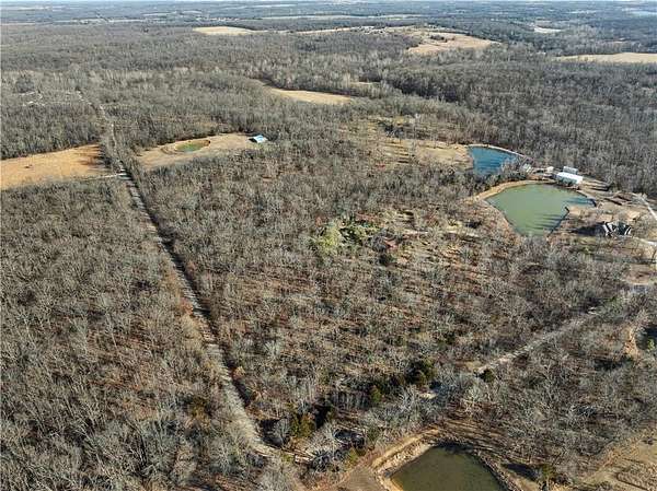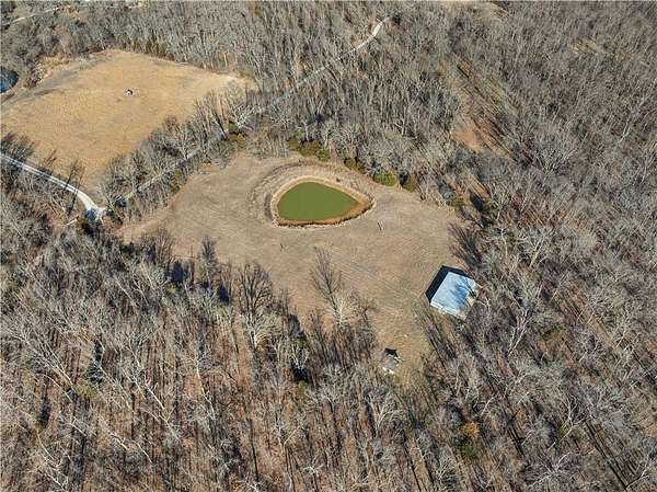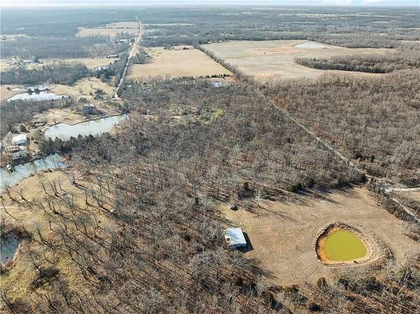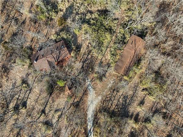 If you've been searching for a private sanctuary that feels like a well-kept secret, your journey concludes at the end of this long winding drive. This rare one-owner find, built in 1991, offers a perfect balance of comfort and style. With a spacious 2-bedroom, 1.5-bathroom layout and an inviting open floor plan, the home is designed for both relaxation and everyday functionality. The heart of the home is a custom kitchen, complete with stainless steel appliances, an island, and a large pantry. A partially covered deck wraps along the front and side of the home, accessible from both the main entry and the living room. The primary suite offers its very own dedicated sitting area, providing a quiet spot to start your morning or unwind at the end of the day. Beyond the main residence, you'll find two additional structures - One is a charming smaller structure that is ideal for a potting shed or art area, and offers access to a storm shelter. A larger second structure serves as an open canvas, ready to be transformed into a guest house, workshop, or additional living quarters. While the majority of this 24 acre m/l tract is timbered ground, the property also offers a portion of pasture with a pond, and a 50x30 outbuilding with concrete floors, electricity, and water. Uniquely situated with road frontage on two sides and three separate access points, the land is incredibly easy to navigate and manage, providing the rare combination of effortless convenience and total, uninterrupted privacy.