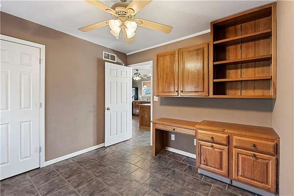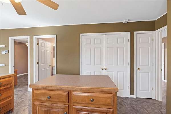 - Ceiling Fan(s), Custom Cabinets, Kitchen Island, Pantry, Walk-In Closet(s)