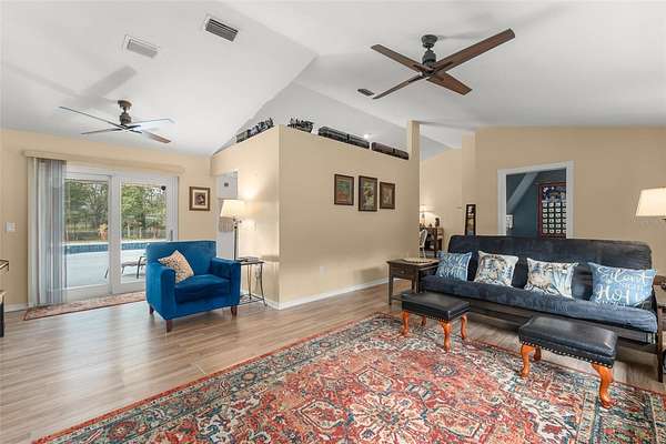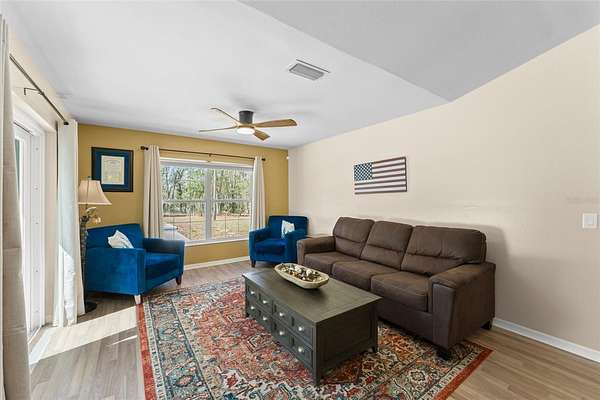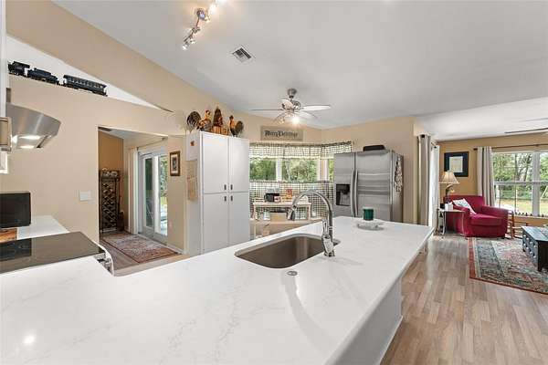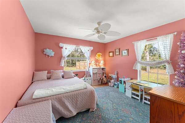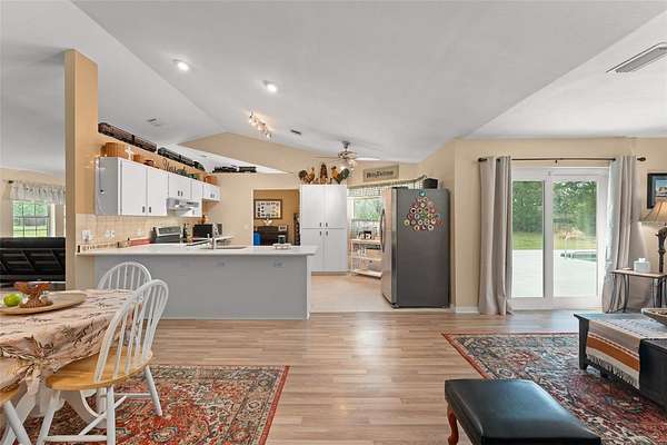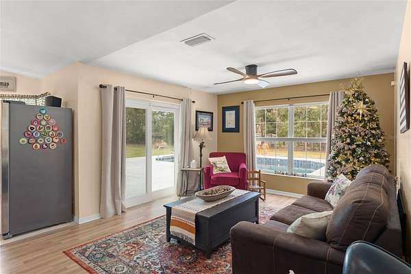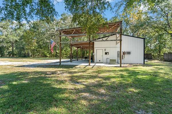 Bring your RV, Boats, Horses, Animals, ATVs and MORE! This incredible split floorplan home will provide everything you need to create an amazing life on close to 4.5 beautiful acres. METICULOUSLY MAINTAINED, beautiful POOL home with over $70,000 in upgrades in the last two years alone: Front Load Washer (replaced 2023)+Water Softener and Sulfa Water Filtration (10/2023)+ Wifi Thermostat (10/2023)+ Dishwasher (11/2023)+ Pool Resurface (4/2024)+ Variable Speed Pool Pump (4/2024)+Upgraded Electric Service to 200 amps (4/2024) + Gutters added to front and sides of the house (4/2024)+ Quartz Kitchen and Primary Bath Countertops and Sinks(10/2024) + Garbage Disposal (10/2024)+Replaced wire fence and poles (2025)+ Exterior and Interior paint (2024) + Flag Pole (6/2024). Enjoy the OVERSIZED 3-Bay DETACHED WORKSHOP/GARAGE with rollup doors and 240V for equipment - also has water! PLUS an additional 24 x 32 metal BARN for HORSES or storage and additional smaller storage shed - also has 240V and WATER! Additional upgrades: Updated Sliding Doors+Fireplace+ ROOF (2015)+WATER HEATER (2023)+ WELL pump (2014) & Tank (2023)+ roll-out poolside awning +POOL SWEEP (2023) + Updated Accessible Spare Bath, and COVERED RV PARKING. The Updated Fixtures include Upgraded SS GE Profile DOUBLE OVEN and the Stainless Steel Refrigerator. BRING THE HORSES with nearby trails and space to store your boats, ATVs and more! There is a BONUS plot across the way for your Garden, GAZEBO or Greenhouse!! Convenient to the 429 CORRIDOR to ORLANDO ATTRACTIONS, Chain of Lakes, Ocala National Forest, Pristine LAKE NORRIS Conservation Area and charming Mount Dora. Come and see all this amazing home has to offer!