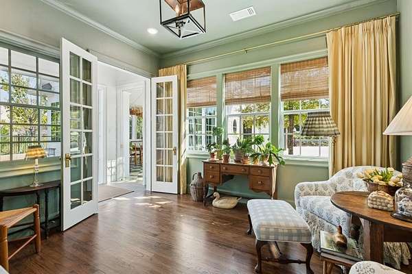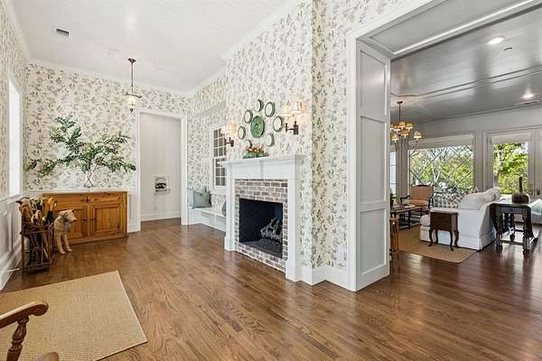 A home truly defined by its extensive custom millwork, designed and crafted to elevate every room. Solid pocket doors, shaker wood shutters,built-in plate rack, and detailed trim around every window and door showcase exceptional artistry. Spa-inspired baths w marble and soapstone surfaces bring timeless beauty and durability. Game room with wet bar and golf simulator, a private office, and four fireplaces finish off the space.