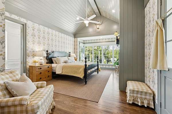 - Cable TV Available, Cathedral Ceiling(s), Chandelier, Decorative Lighting, Dry Bar, Eat-In Kitchen, Flat Screen Wiring, High Speed Internet Available, Kitchen Island, Natural Woodwork, Open Floorplan, Paneling, Pantry, Second Primary Bedroom, Sound System Wiring, Vaulted Ceiling(s), Wainscoting, Walk-In Closet(s), Wet Bar
