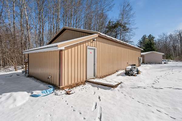 Welcome to the country! This 3 bed 2 bed ranch home is set up on over 5 acres of usable land, and include multiples garages, a workshop, and thousands of square feet of high-use space that is served by heavy power, insulated, and set up to be secure, utilizable space. You will appreciate features like a spacious primary suite, a private backyard deck, and plenty of yard space. Located conveniently close to US 10 and M 66. Set up your tour today!