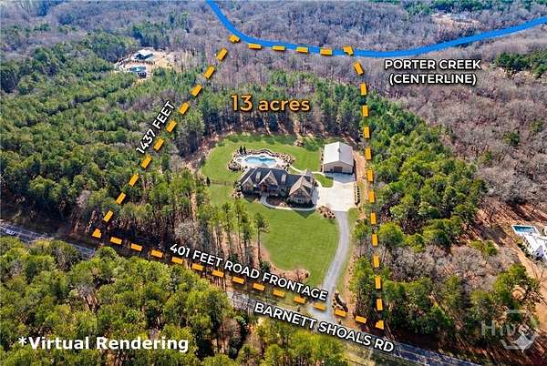 Beautiful 13 Acre Wooded Estate Tract with Creek in an Amazing Location of Oconee County! This is one you don't want to miss! Location features rural vibes without a long commute - Less than 2mi from WirePark & Watkinsville City Limits on Barnett Shoals Rd. One tour & you'll be captivated by the gorgeous hardwood forest up front, the privacy that a 400 foot wide wooded tract offers as well as the peaceful sound of water flowing down the shoals of Porter Creek along the rear of the property. The adjoining parcels are 5, 10, 13 & 50 acres of land, solidifying the rural feel of the area being large estate tracts rather than high-density residential. Public Water & Fiber Internet are available at the street and a soil test has already been completed at two home site options for conventional septic system. The property is zoned AG and CUV is already in place for great savings on property taxes. Call to schedule your tour of this great property today!