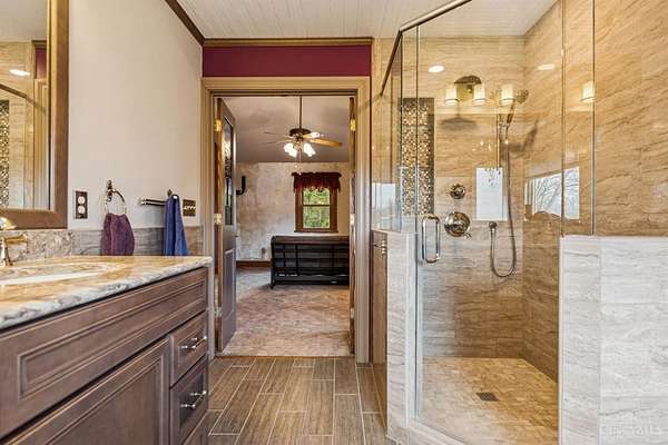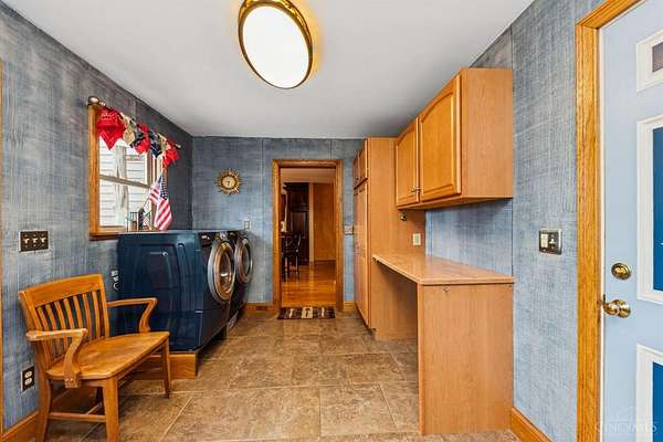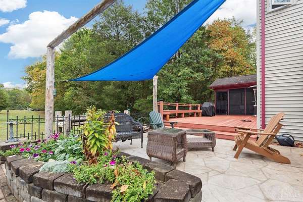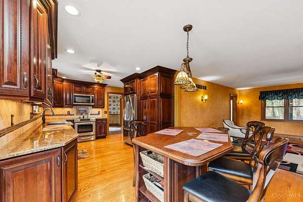 Discover refined country living on 5 private acres, just minutes from shopping and less than 10 minutes to I-275. This 3-bedroom, 4-bath estate blends timeless craftsmanship with modern updates, featuring a chef's kitchen with high-end finishes, stunning natural woodwork, newer windows, and an efficient geothermal HVAC system. The luxurious primary suite includes a spa-like bath with heated floors and serene views of the park-like backyard. Relax by the wood-burning stove or in the screened-in porch overlooking the picturesque pond. Outdoor living shines with stamped concrete patios and walkways and an inviting entertaining area. A private drive leads to an oversized 2-car garage and a massive pole barn with electric, loft, and its own wood-burning stove ideal for storage, hobbies, or gatherings. For added peace of mind, this meticulously maintained home has been pre-inspected, ensuring a smooth and confident transition to its next owner. A true retreat offering privacy and convenience