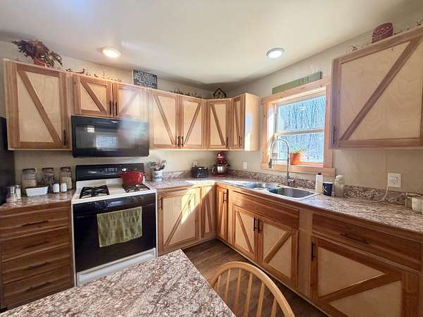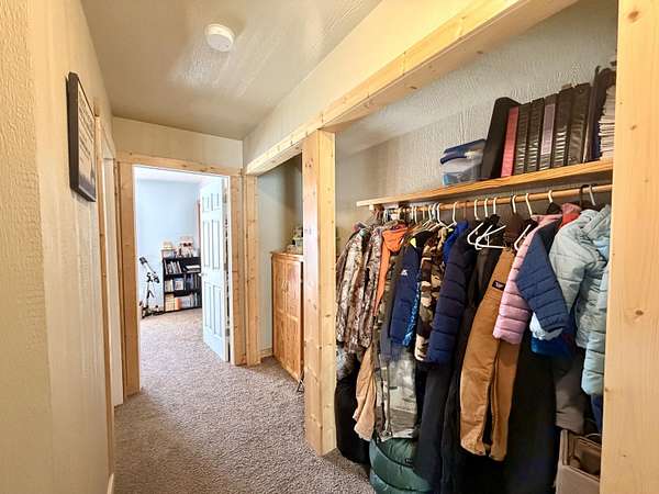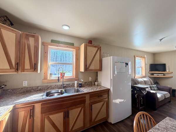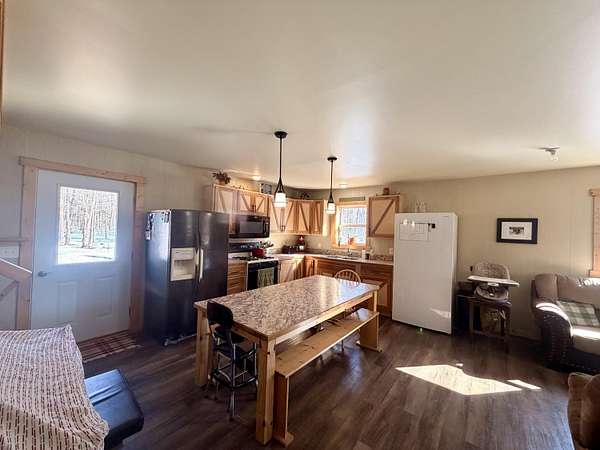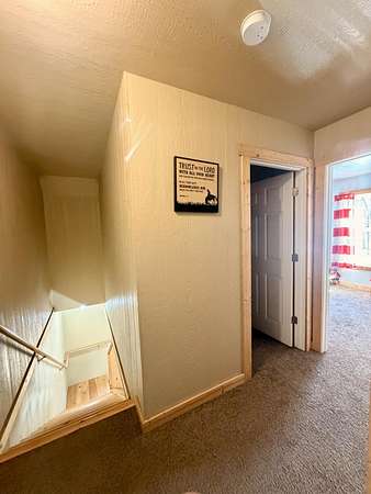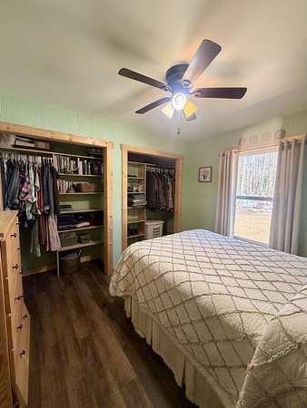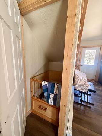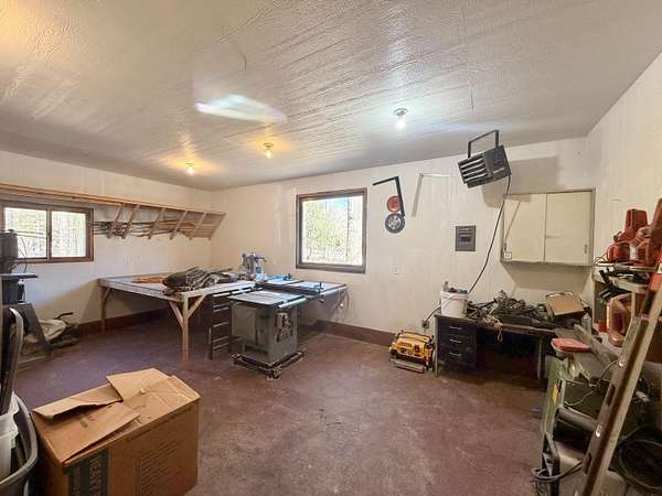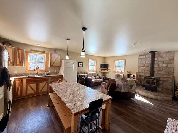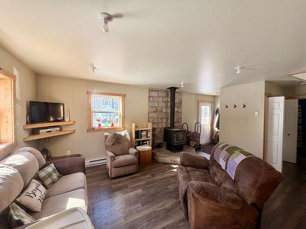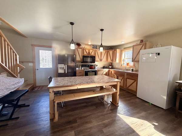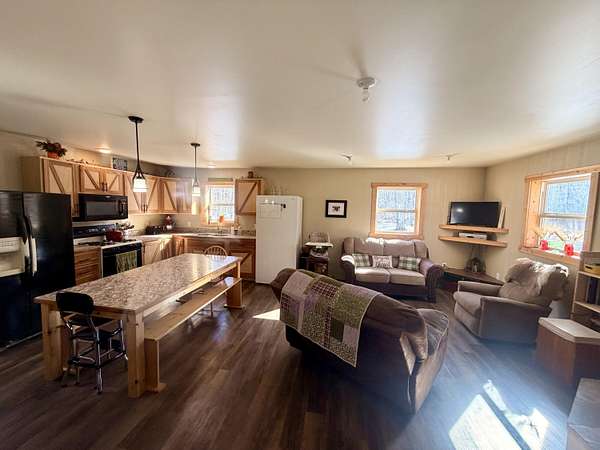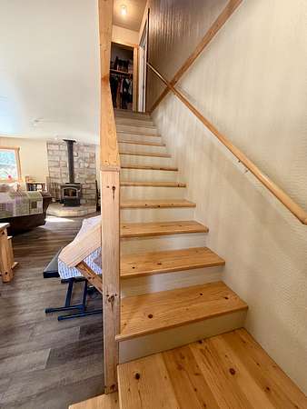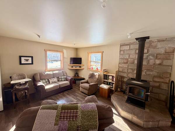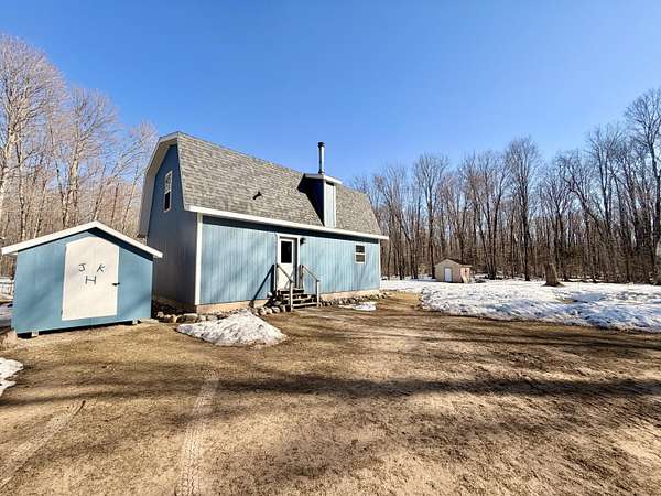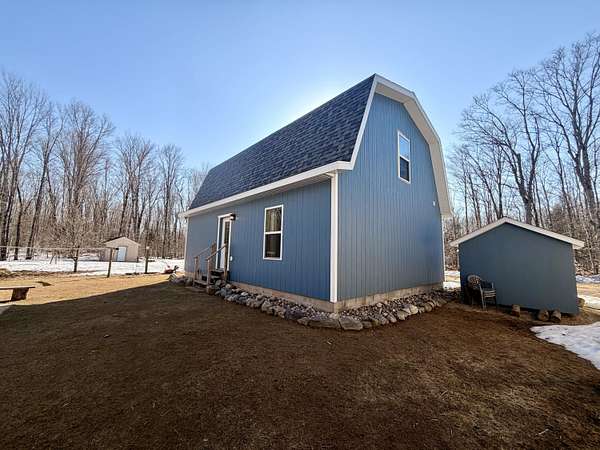 Welcome to this beautifully crafted 3 bedroom, 1 bathroom gambrel-style home, built in 2020 and quietly nestled on 9.5 acres in McMillan. This property offers the perfect blend of modern construction and homestead living, with space, functionality, and charm throughout.The home features a thoughtfully designed layout with a spacious main floor including a large entryway closet (currently used as a pantry), open living room, kitchen, laundry area, full bathroom, and primary bedroom. Upstairs, you'll find two additional bedrooms, a dedicated office/quilting room, and a large closet for added storage.Built with quality in mind, the home includes a clean, dry 6-block crawl space, an efficient wood-burning stove, and custom cabinetry and shelving throughout.