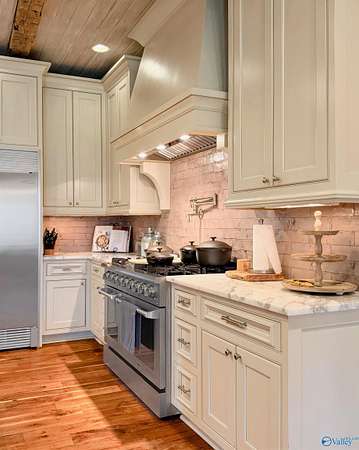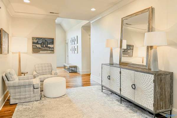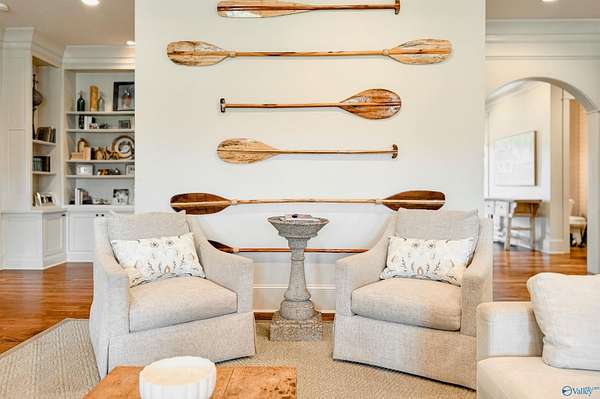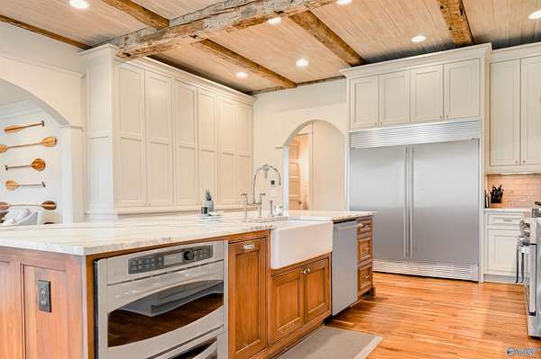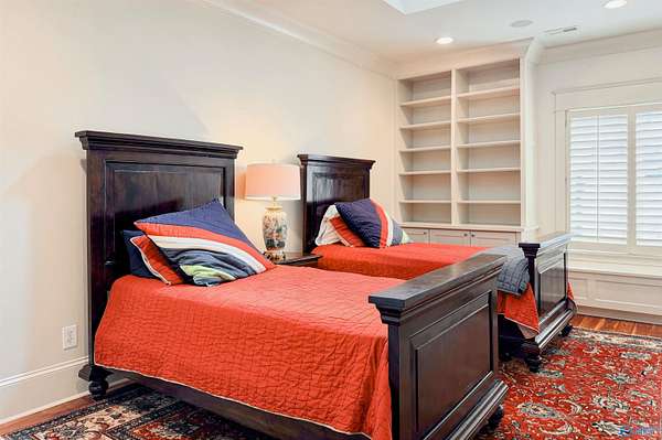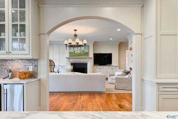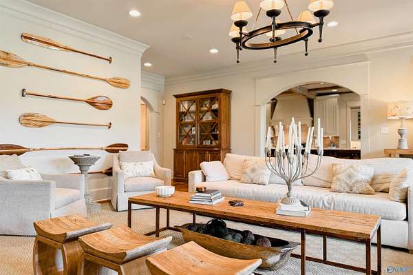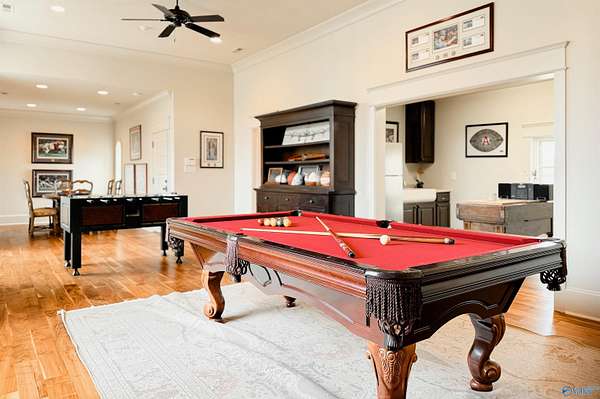 Welcome to this stunning 7,824 sq ft estate with 5 bedrooms, uniquely designed by a respected local architect and bordering a peaceful wildlife refuge. Just 5 minutes from I-65, this property offers both privacy and convenience. Inside, walnut wood floors run throughout a spacious layout designed for large-scale entertaining, including an expansive rec room. High-end finishes are featured across the home. Outdoor amenities include a fully stocked pond, saltwater gunnite pool, and covered grilling area ideal for gatherings. A large, detached shop with county zoning provides excellent flexibility, and the garage apartment offers a private entrance for guests or extended living.