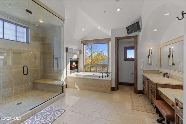 - Gas Fireplace, Jetted Bath, Spa/Hot Tub, Steam Shower, Vaulted Ceiling(s)