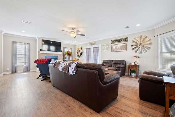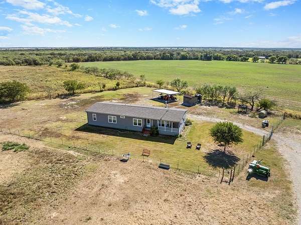 Discover peaceful country living at its best on 11.13 ag-exempt acres in Jack County! This beautiful 2018 home offers 3 bedrooms, 2 baths, and 2,280 sq ft of open-concept living. Features include granite countertops, tall ceilings, a wood-burning fireplace, and a partial wrap-around front porch perfect for relaxing outdoors. The property is fully fenced and gated with a private well, septic, and a scenic stock tank. Enjoy room for livestock, a shop, or future expansion. Located on a quiet county road just minutes from Perrin and Graford -- experience modern comfort with wide-open Texas views