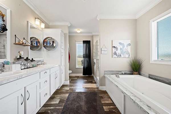 - Double Vanity, Eat-In Kitchen, Granite Counters, Kitchen Island, Open Floorplan, Walk-In Closet(s)