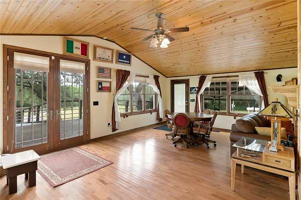 Introducing a stunning country retreat nestled on 22.9 ACRES of picturesque Texas landscape WITH private Nueces River Frontage. This exquisite 4-bedroom, 2.5-bathroom home offers a perfect blend of tranquility and luxury. As you approach, you'll be captivated by the charming facade, surrounded by mature trees that provide a natural canopy and privacy. Imagine enjoying your morning coffee or unwinding in the evening on the expansive deck that overlooks the gently flowing river. The deck becomes a perfect vantage point to witness the breathtaking Texas sky, showcasing vibrant colors during sunsets. The unique wildlife that graces the surroundings, creates a harmonious connection with the natural beauty of the land. As night falls, step outside to witness a mesmerizing display of stars, where the absence of city lights allows for an uninterrupted view of millions of twinkling celestial bodies. Inside, the home boasts a thoughtful and spacious open floor plan, with four large bedrooms.