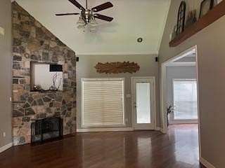 - Blinds, Cathedral Ceiling, Ceiling Fan(s), Fireplace-Gas, Fireplace-Wood, Granite Countertops