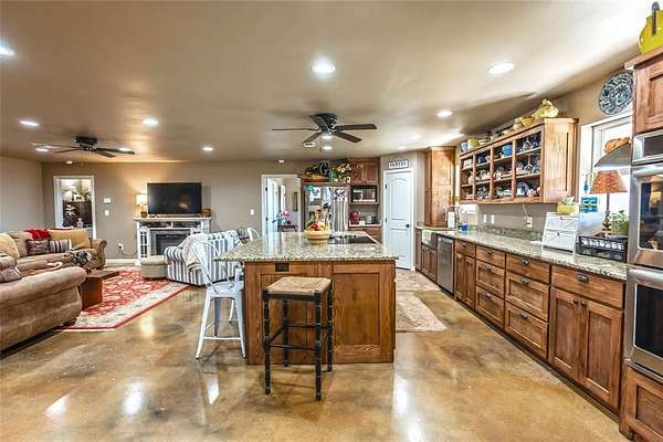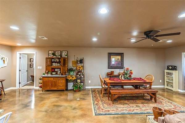 Nestled just east of Nocona, this stunning 33+ acre property offers the perfect blend of natural beauty and modern living. The land features rolling terrain, mature oak trees, and a picturesque pond stocked with fish—ideal for peaceful country living or a weekend retreat. The custom barndominium, with attached shop and carport showcases an open floor plan with stained concrete floors, custom cabinetry, and quality finishes throughout. Designed for comfort and efficiency, the home and attached structures are fully spray foam insulated. Enjoy outdoor living at its finest with covered patios and dedicated entertaining areas, perfect for relaxing or hosting guests while taking in the abundant wildlife, including whitetail deer and turkey. Additional features include a carport and a spacious, fully heated and cooled shop—ideal for hobbies, storage, or business use. This exceptional property offers privacy, functionality, and scenic surroundings in a highly desirable location.