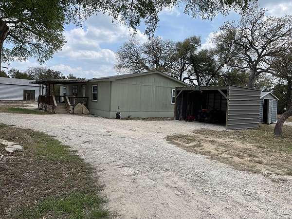 Est $2,258/moResidential or Commercial 5 UNRESTRICTED acres with Grand Daddy OAKS ,170+ feet of FM 306 frontage, a private well, and 2 septic tanks. There is plenty of nature, peace and privacy in the back of the property. Perfect for a home business situation. Well maintained doublewide 3 bedroom-2 bath with a bonus room ( updated roof and central AC/Heat). This level oak studded property includes out buildings and is partially fenced. Minutes from shopping and schools, located between Austin and San Antonio accessible to tons of Hill Country recreation.