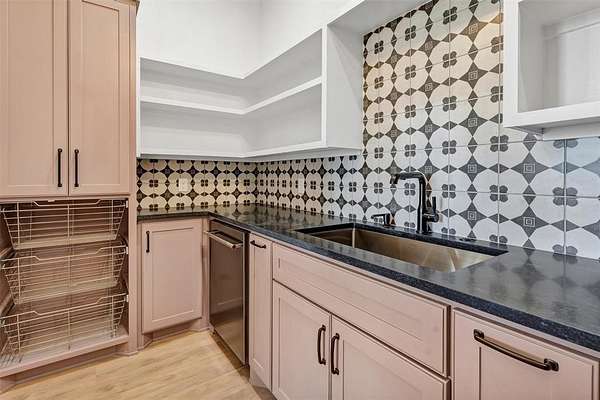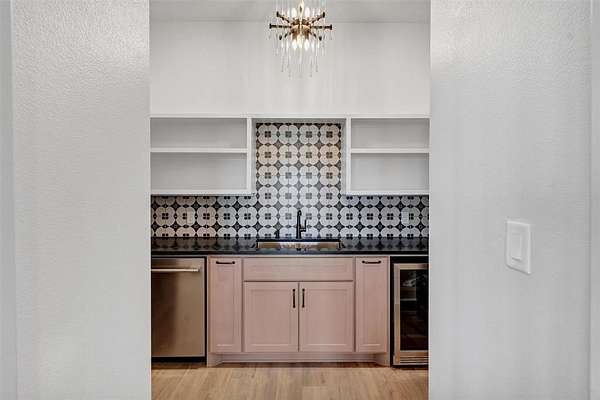 The kitchen is both functional and show-stopping, featuring quartz countertops, KitchenAid appliances, built-in microwave, and a large center island ideal for gathering. A spacious butler's pantry offers exceptional storage and prep space with a second dishwasher and a beverage refrigerator, making entertaining effortless.
