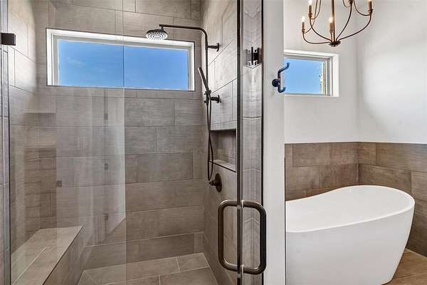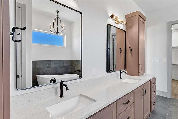 The primary suite offers a peaceful retreat with a spa-inspired bathroom showcasing a standalone soaking tub, walk-in shower, and elevated finishes. All 3 secondary bedrooms include walk-in closets, providing generous storage throughout. A dedicated office offers flexibility for working from home or additional living space. A half bathroom near the generous laundry room offers convenience for all.