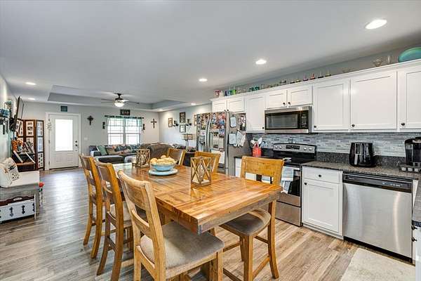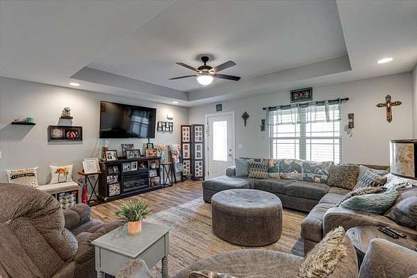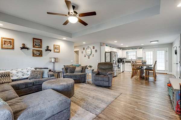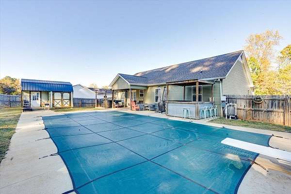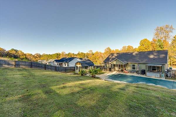 Welcome to this beautiful modern ranch-style home built in 2020, perfectly situated on a spacious 1.58-acre fenced lot offering privacy, comfort, and endless outdoor enjoyment. Step inside to discover an open-concept kitchen and living room, ideal for entertaining family and friends. The kitchen features stylish finishes, ample counter space, and a seamless flow into the cozy living area. Outside, you'll find your own private oasis — an in-ground pool, relaxing hot tub, and outdoor grilling area perfect for summer gatherings. The property also includes a fully fenced yard with an additional dog-run area at the back, providing a safe and fun space for pets to play. Additional highlights include a two-car garage, charming front porch, and a peaceful setting surrounded by nature.