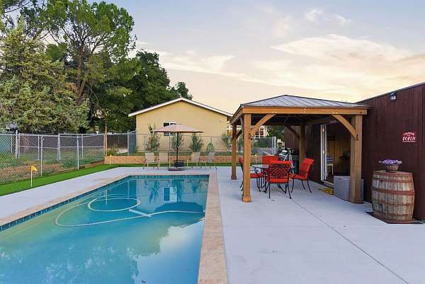 - Barnwood-style pool house