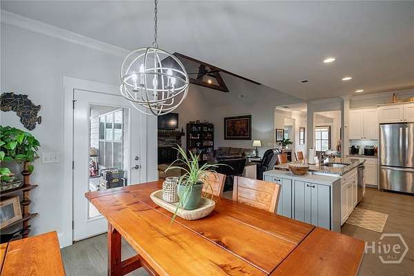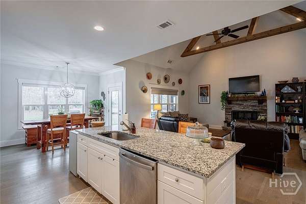 - Breakfast Area, Entrance Foyer, Fireplace, Kitchen Island, Pantry, Primary Suite, Recessed Lighting, Vaulted Ceiling(s)