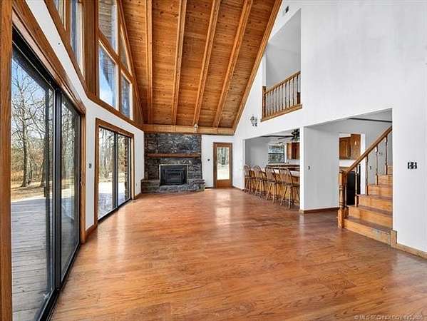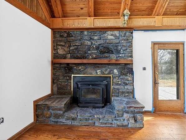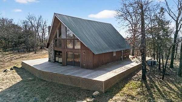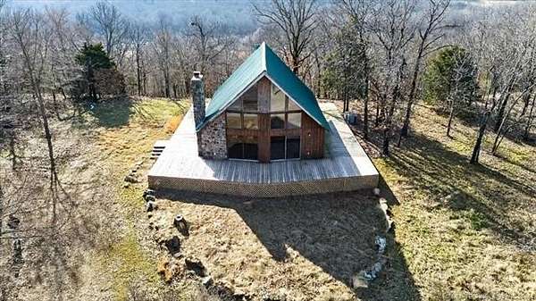 IMPROVEMENTS: 1993 built A-Frame wrap-a-round porch, 2 story home equipped with semi open floor plan with wood burning fireplace and lots of windows to let the sun shine in. Such a fitting home for this property. Plenty of woods, but enough cleared for a garden, chickens and other farm animals.